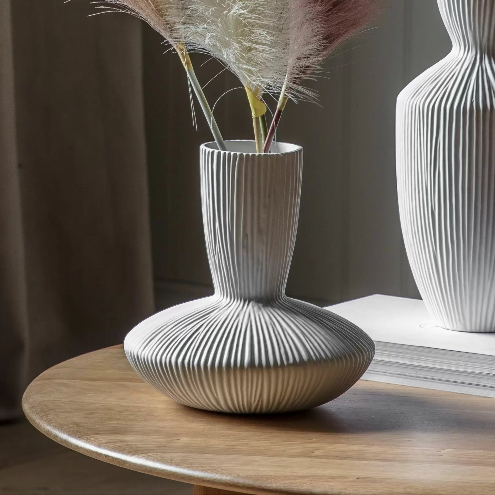 An eye catching Vase featuring an elegant shape with a ribbed textured surface to create a stunning piece.