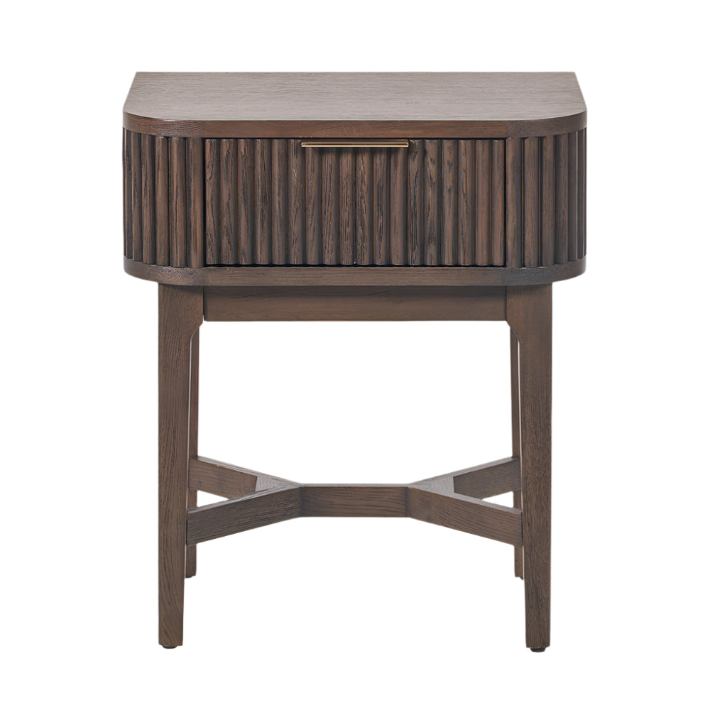 Raie Dark Brown Ribbed Oak & Pine Wood 1 Drawer Unit