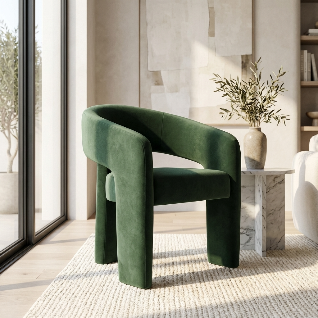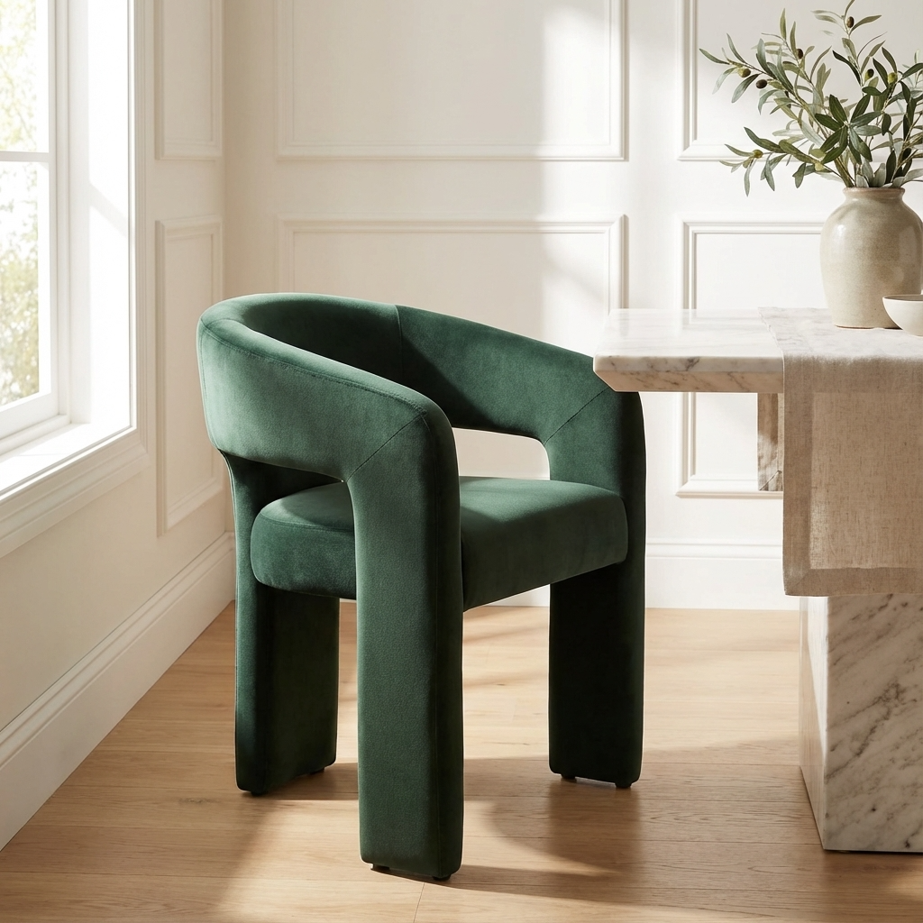 From the Curve collection, the Alba is a modern and stylish piece which comes in a comfortable and soft, forest green shade of velvet. The sleek design makes a fantastic addition to any dining setting, from modern and minimalist to chic and eclectic. Whether used as a set around a dining table or as a standalone accent chair, the Alba effortlessley elevates your space with its contemporary appeal.