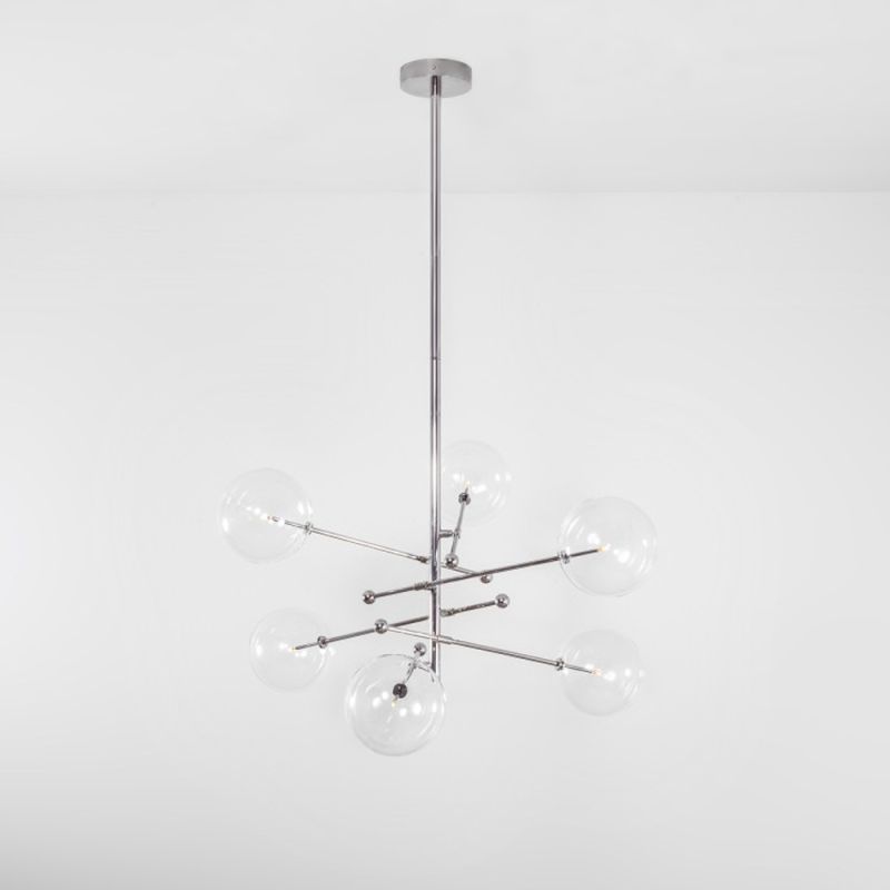 Schwung RD15 6 Arms Polished Nickel Transparent Globe Chandelier