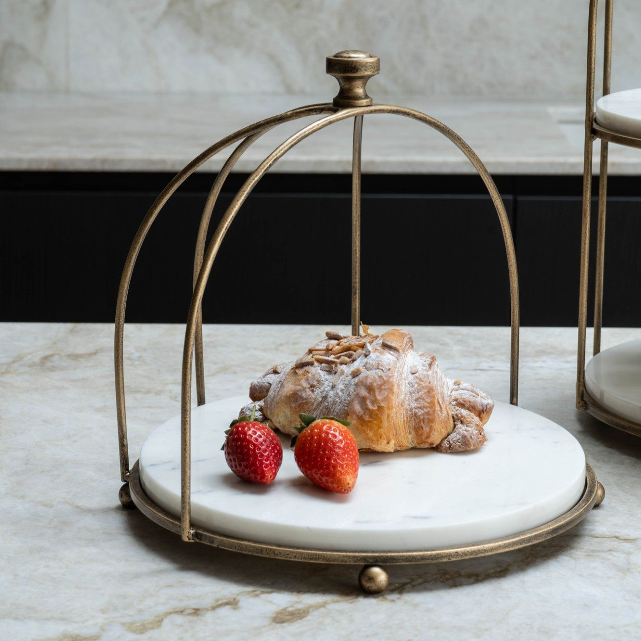 Belvedere Aged Gold & White Marble 1 Tiered Stand