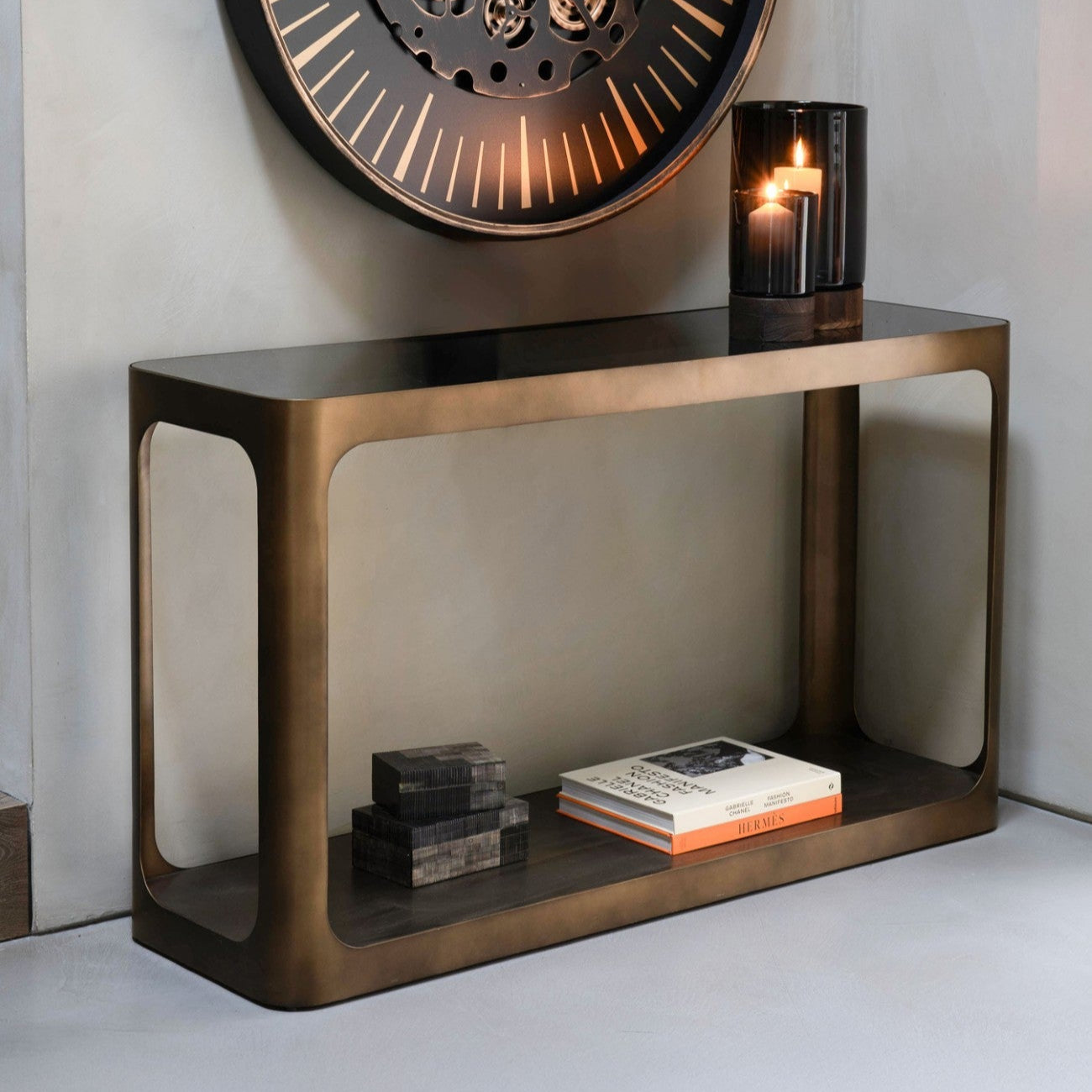 Thorpe Bronze & Smoked Glass Console Table