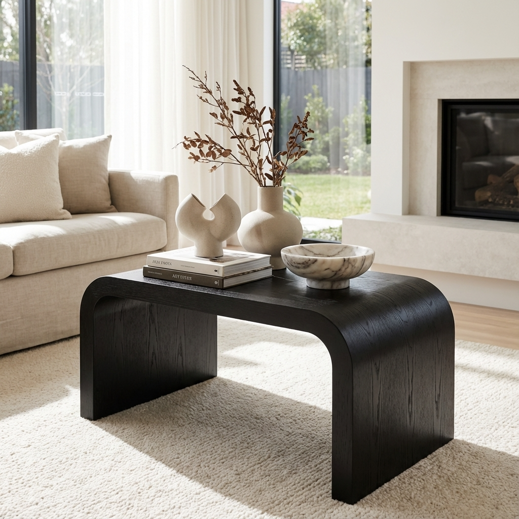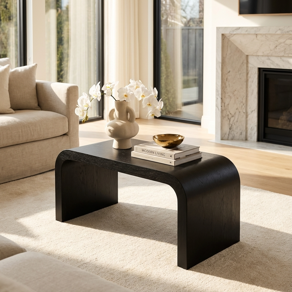 The Lake Black Coffee Table is a sophisticated centerpiece that brings a touch of elegance and modernity to your living space. Featuring a sleek black finish and a distinctive curved design, this coffee table combines aesthetic appeal with practical functionality, making it a versatile addition to any room.
