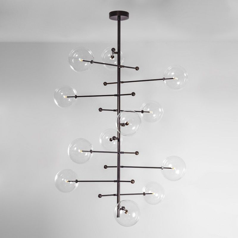 Schwung RD15 12 Arms Black Gunmetal Transparent Globe Chandelier