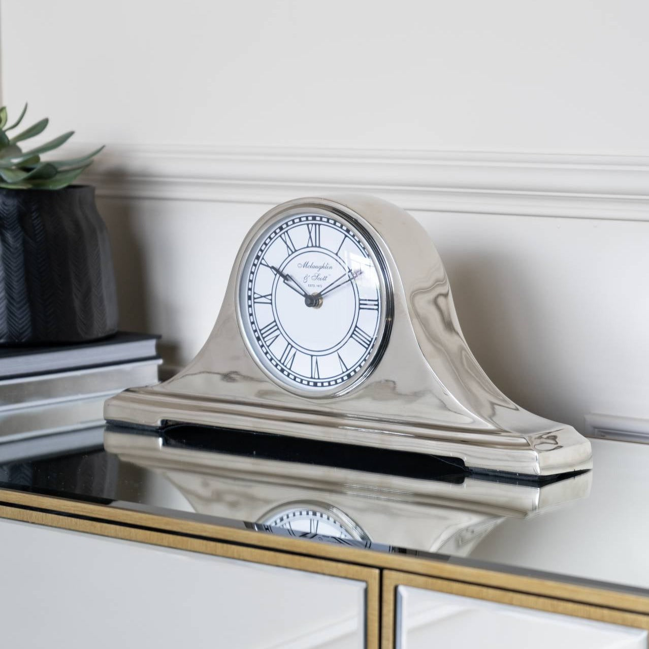 Retro Carriage Mantel Clock in Nickel Finish