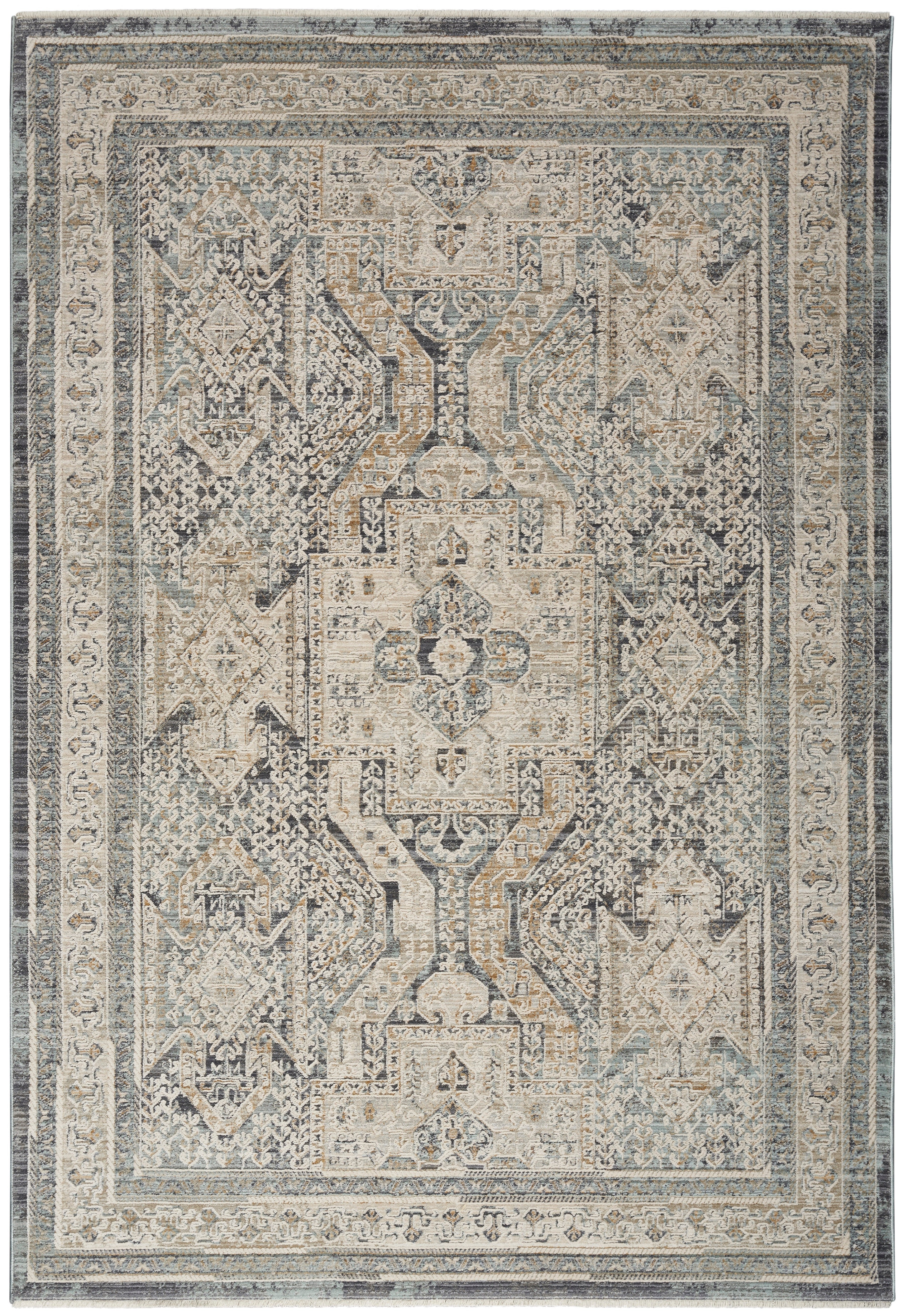 The artistic reimagining of timeless Persian-inspired and tribal patterns in the Lynx Area Rug Collection adds global energy to your space. These stunning designs are complemented by subtly raised accents, nuanced color palettes, and purposeful distressing that lends a vintage feel. With short fringe at both ends and metallic serged edges, Lynx is ideal for contemporary and boho décor.