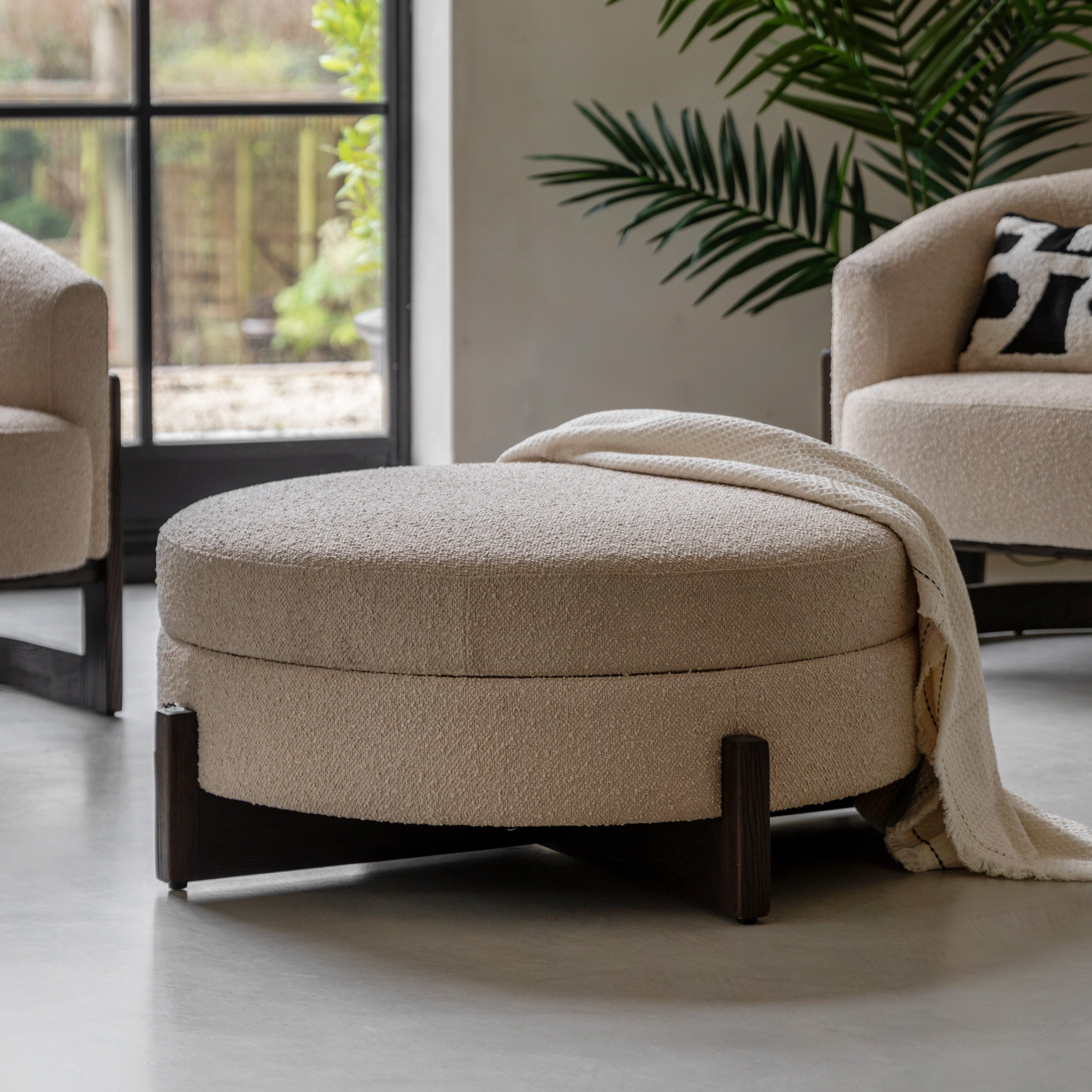 Daniela Cream Boucle Round Ottoman Footstool