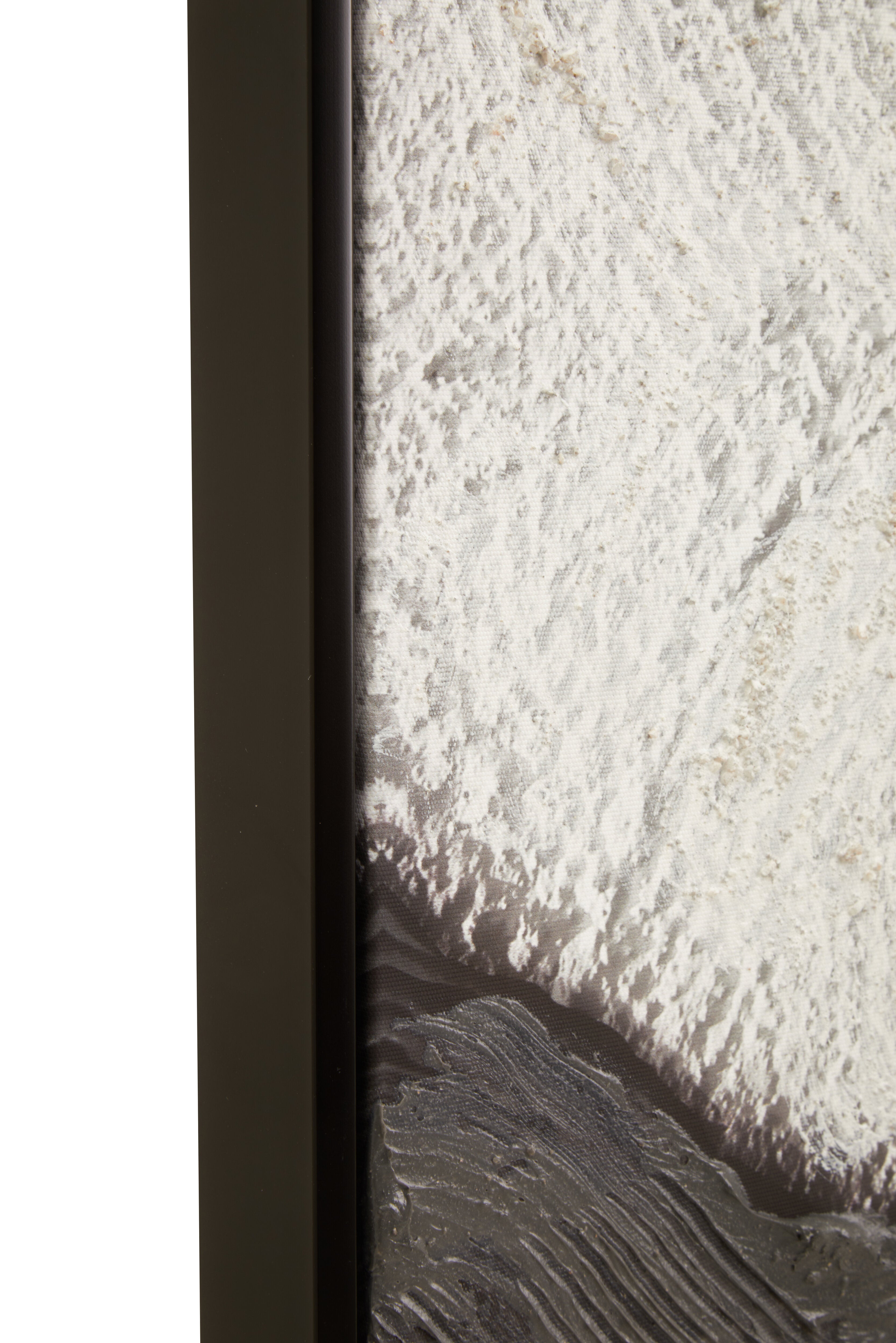 The Astratto wall art displays a neutral hued canvas painting enclosed in a wooden frame.