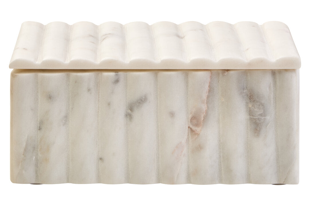 Athena Rectangular White Fluted Marble Box