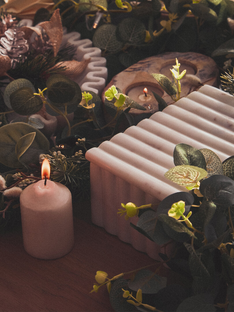 This rectangular fluted box with lid combines elegant texture and practical storage to complement modern decor settings.