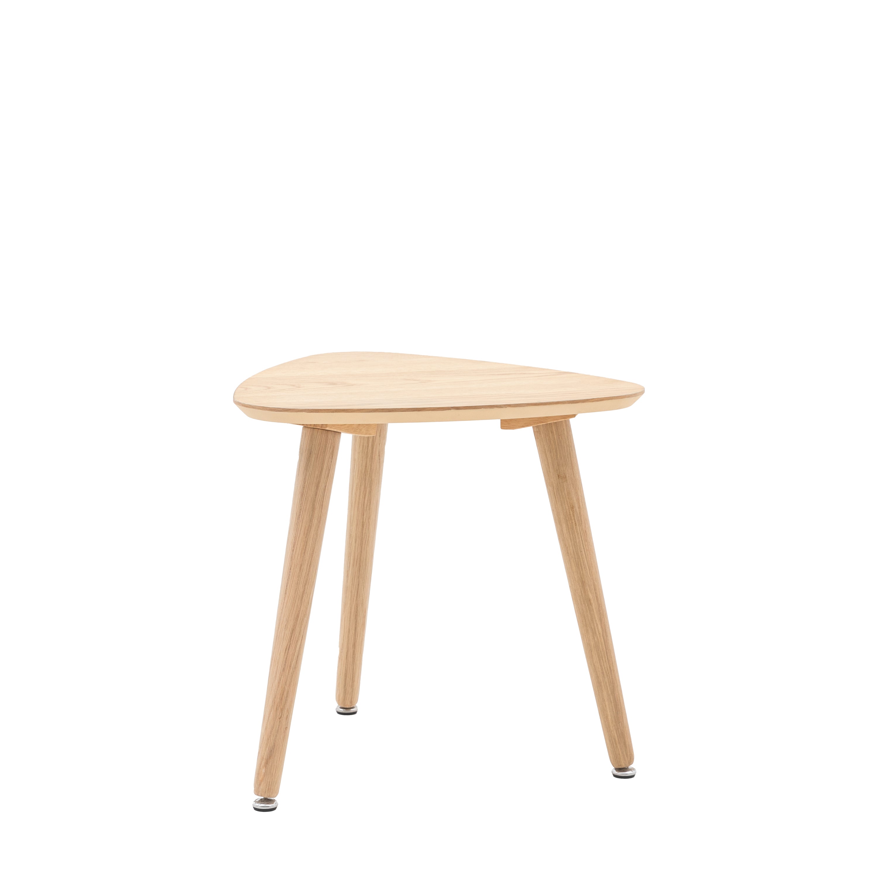 This side table is a stylish and versatile addition to any living space. Its unique triangular shape and oak construction create a modern and eye-catching look. The tapered legs and natural wood finish complement a variety of interior styles. Perfect for use as a bedside table, sofa side table, or accent table.