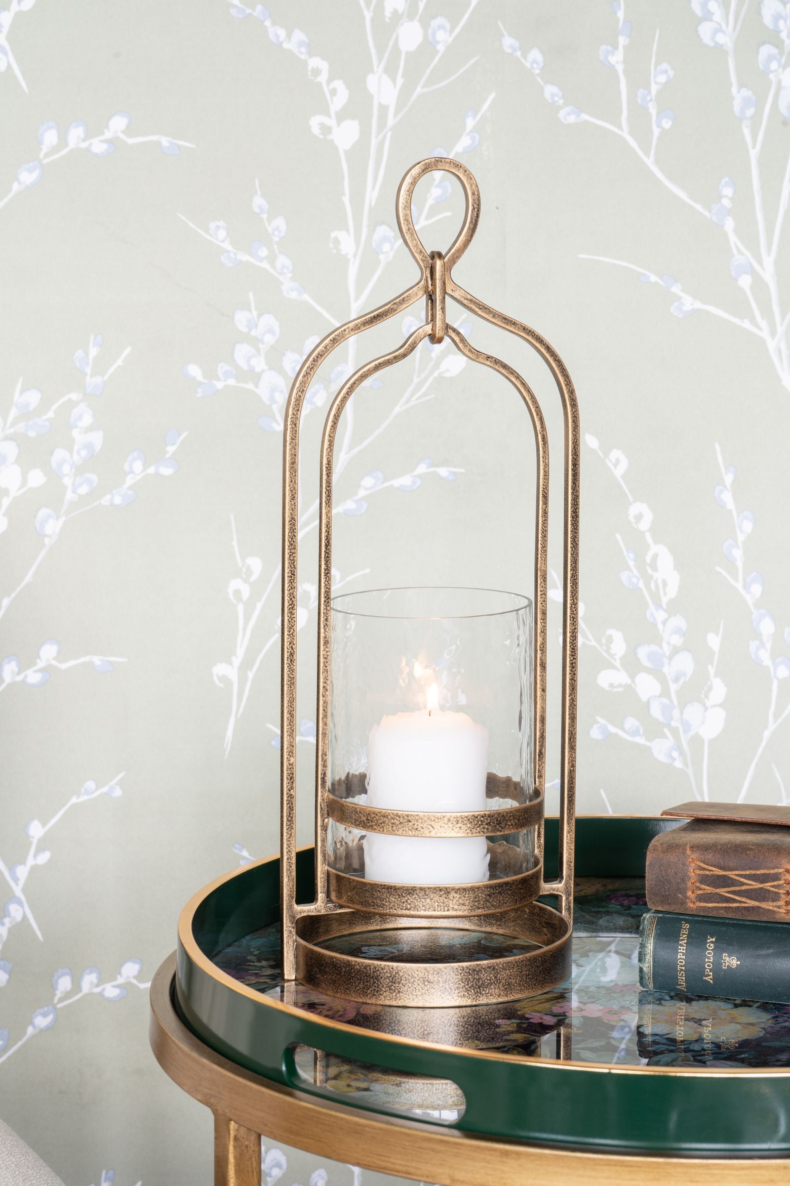 Laura Ashley Aged Gold Loop Hurricane Candle Holder | Small
