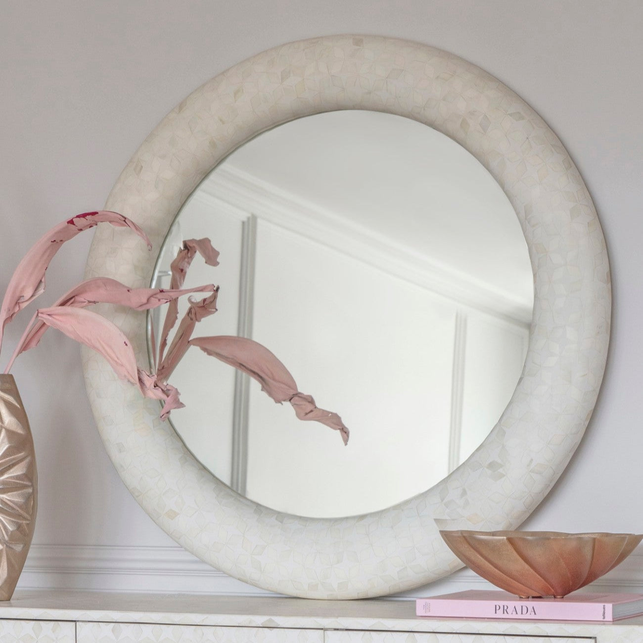 Aspen White Bone Inlay Round Mirror 100cm