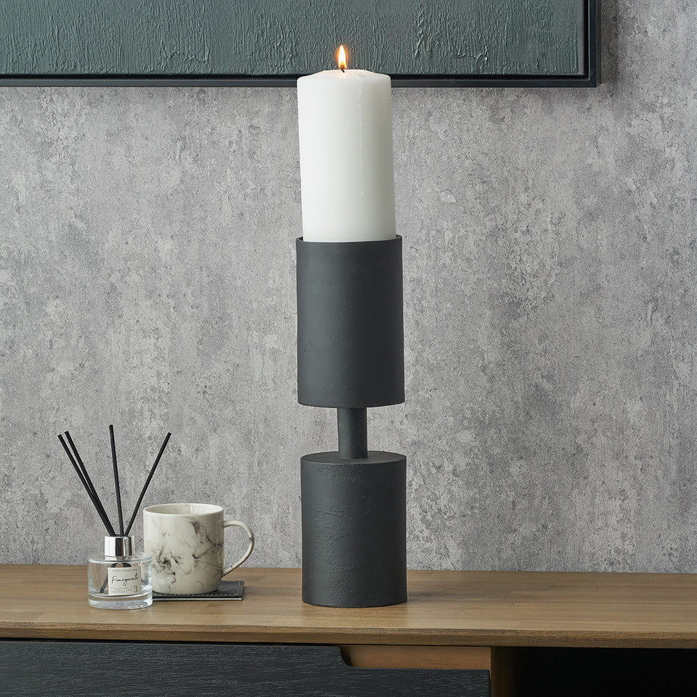 Matt Black Metal Pillar Candle Holder Large