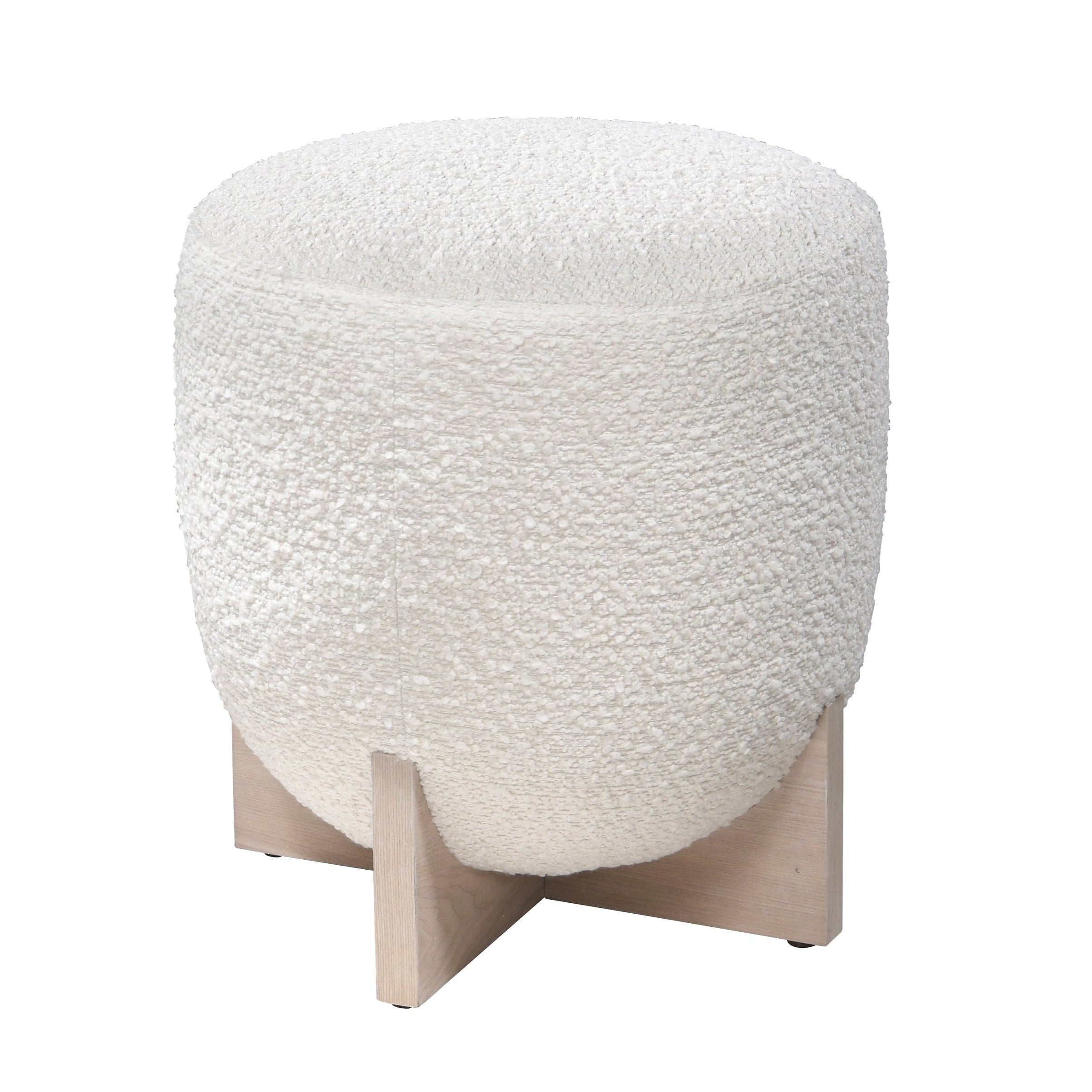 Whisper Whitewash Oak Wood & White Boucle Pouffe